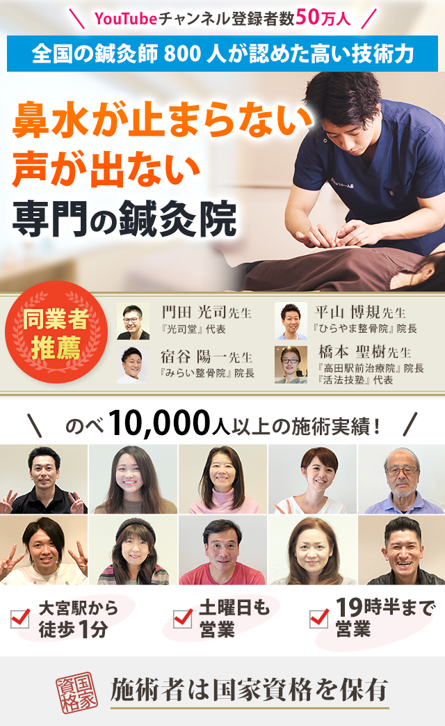 一週間後にどうしても人前で話さなくてはならない事があり、なんとかして話せる程度まで声を治したいと、色々探していたところ、「鍼治療がいいんじゃない?」と知人に言われ、試してみようと思いました。